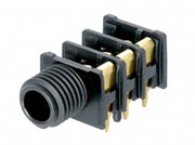 Разъем JACK 1/4" стерео панельный, гнездо, пайка провода, тип-D, с фиксатором, черный, позолоч. конт