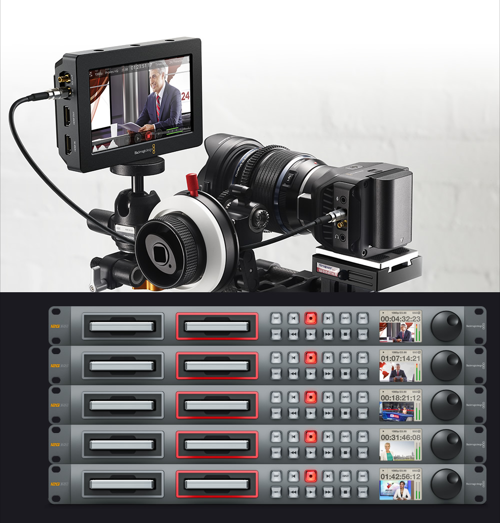 Если нужно выполнить запись сигнала одной или нескольких камер в ProRes, DNxHD или даже несжатого 10-битного видео, Micro Studio Camera 4K можно подключить к нескольким рекордерам HyperDeck Studio.